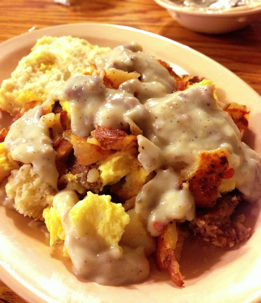 But we are not here to discuss the minutiae of Tennessee cities, are we? We are here to discuss biscuits, which I found at a little place called Milk & Honey just across the river on the north side of town, within walking distance of the aquarium as long as the weather is cooperating. Which, I have to say, it only barely was. When we planned this trip, July seemed a safe bet for a rafting trip down the Ocoee and a weekend in Chattanooga. Sigh. We ended up with cold and rain in some weird summer weather anomaly. No matter. We were on vacation!